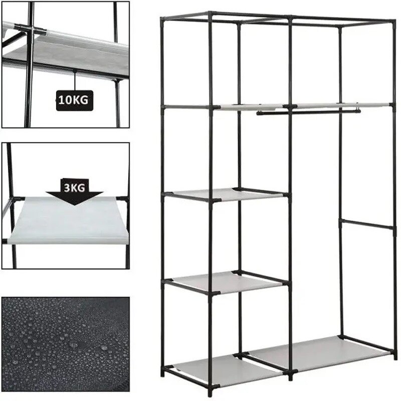 С конструкция от стоманени тръби и здрав плат, гардеробът предлага издръжливост.