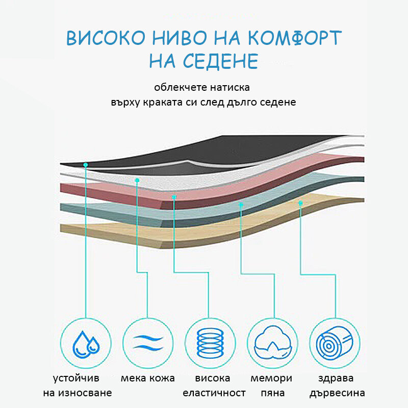 Мека ЕКО кожа с висока плътност, лесна за почистване и дълготрайна.