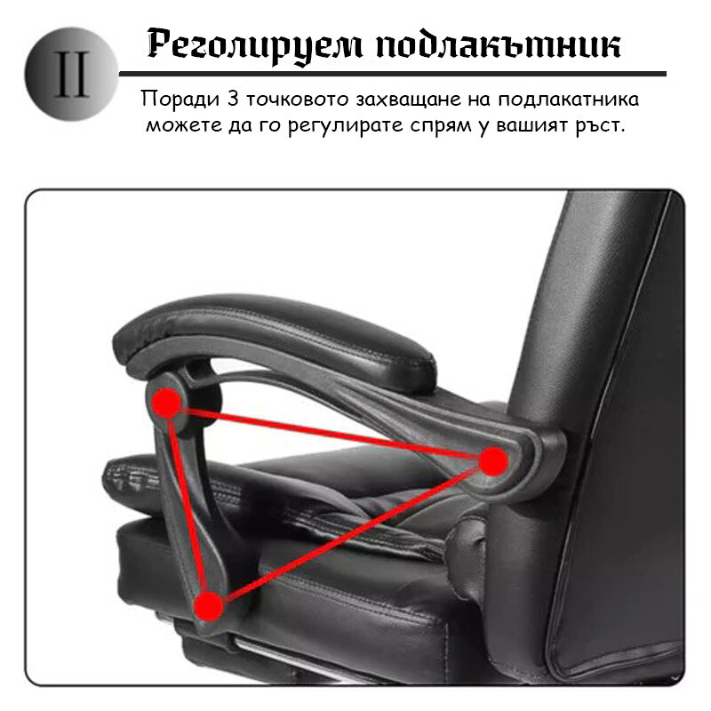 Ергономичен подлакътник, който се движи с наклона на стола.