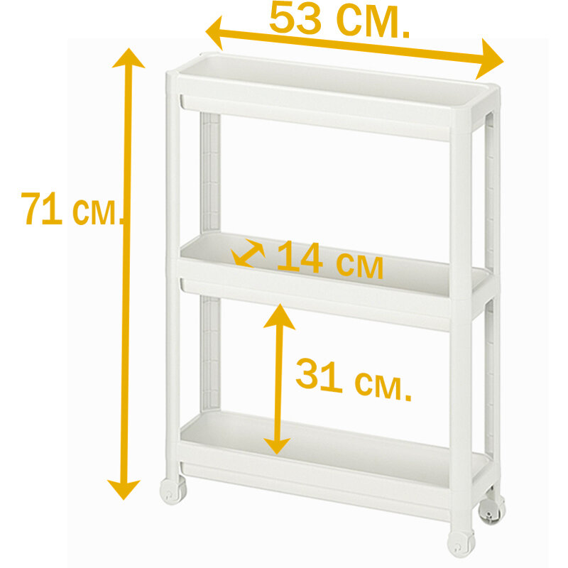 Подвижна етажерка на 3 нива, с колелца, ШИРОКА РАФ УНИ ТЕСИ